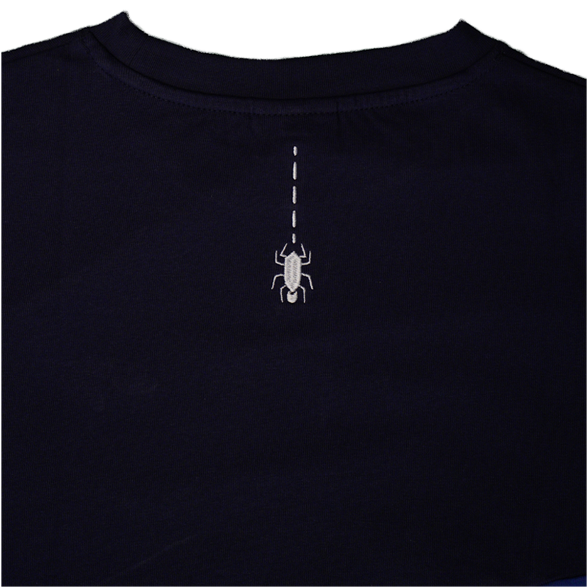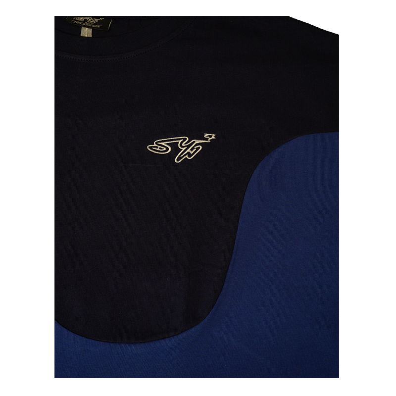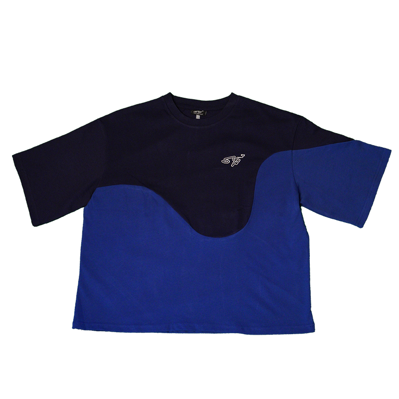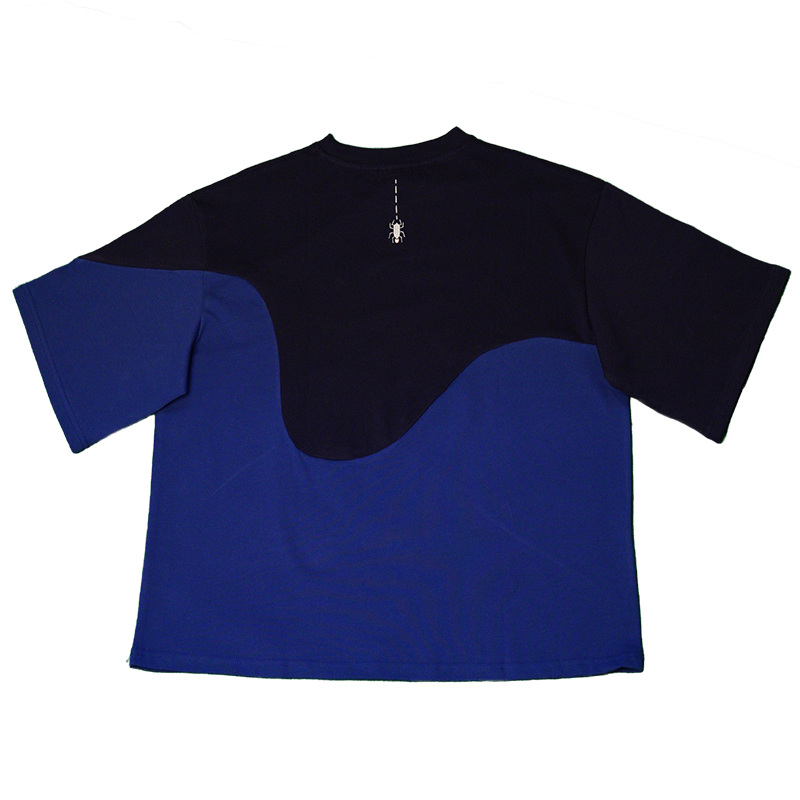 Our latest release of SS25. a two tone tee with a box shape and a slightly cropped fit. Dropped shoulders and embroidery design. The two panel stitch represents the alternate personality we all hide.
