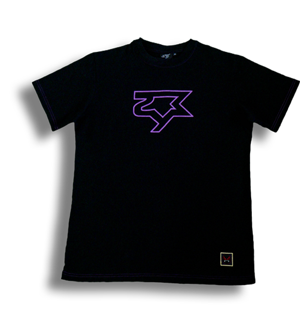 •Fine quality black Tee •Coloured stitching •Woven label •Embroidered finish •Syw screen print front/back