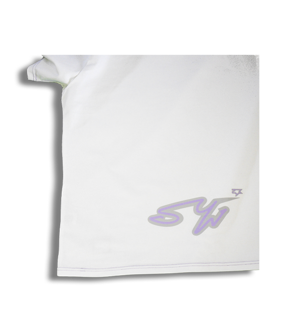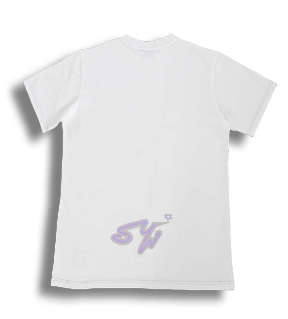 •Fine quality white Tee •Coloured stitching •Woven label •Embroidered finish •Syw screen print front/back